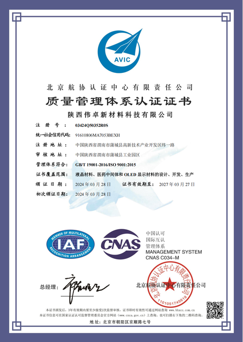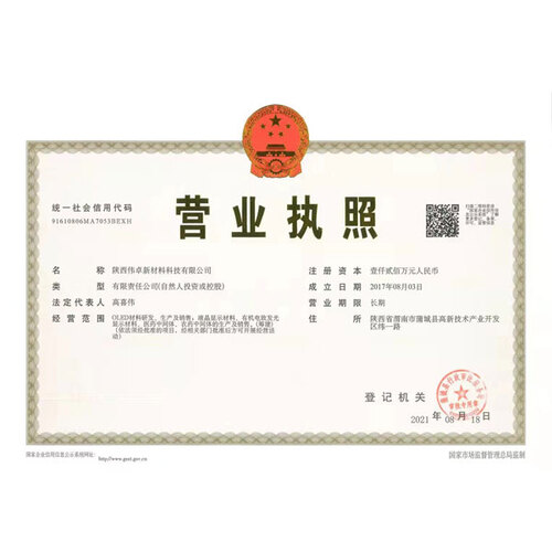 陕西伟卓新材料科技有限公司成立于2017年8月3日,公司地址位于陕西省渭南市蒲城县高新技术产业开发区纬一路,注册资金1200万人民币。主要从事有机合成精细化工行业,公司总占地22668平方米,设年产110吨的精细化工系列产品生产线,员工120余人。业务板块包含液晶材料中间体及单体、OLED显示照明材料中间体、医药中间体及电子化学品等设计有机合成的新材料研发、生产。